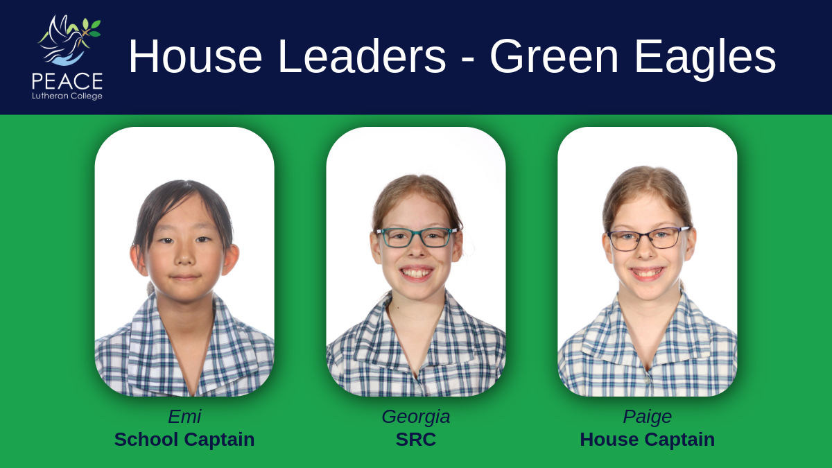Year 5 students, moving into Year 6 the following year, have the opportunity to be nominated for student leadership positions within each of the College's four school House teams - Blue Dolphins, Gold Dingoes, Green Eagles, and Red Emperors, and The Arts. The positions include: